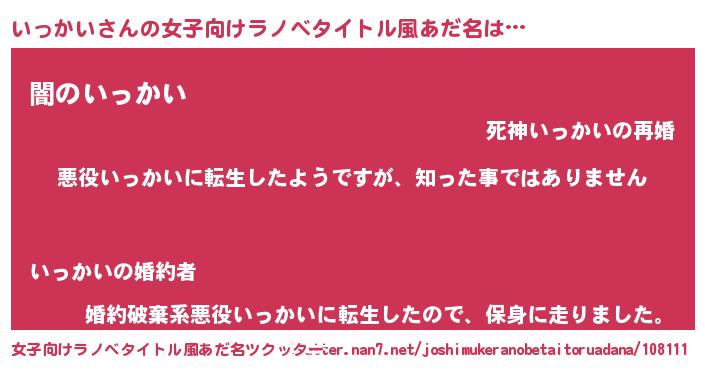 | 男性向けラノベタイトル風あだ名 | 『この素晴らしい世界にいっかいを!』 |