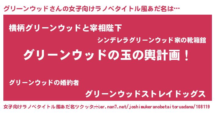 | 男性向けラノベタイトル風あだ名 | 『転生したらグリーンウッドだった件』 |