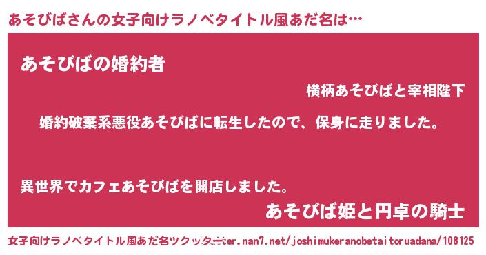 | 胡散臭い通販商品みたいなあだ名 | 『幸せが訪れる高級そうな絵画…その名も「あそびば」』 |
