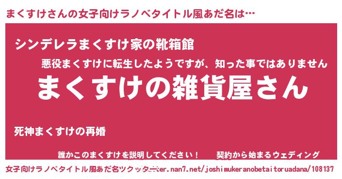 | 男性向けラノベタイトル風あだ名 | 『やはりまくすけの青春ラブコメはまちがっている 』 |