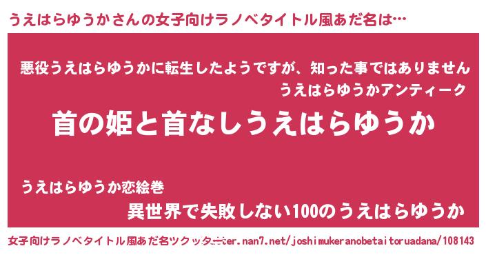 | 意味不明あだ名 | 『住所不定無職うえはらゆうか(77歳)』 |