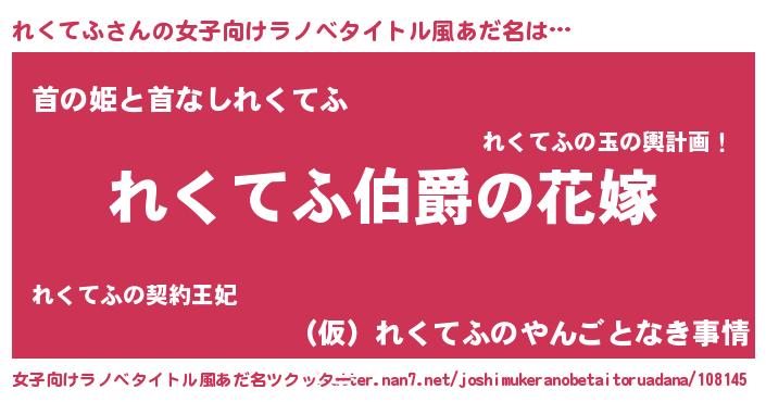 | 男性向けラノベタイトル風あだ名 | 『やはりれくてふの青春ラブコメはまちがっている 』 |