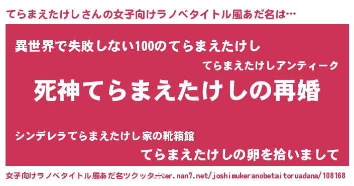 | ヒーロー風カッコイイあだ名 | 『慈愛の使者てらまえたけし』 |
