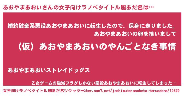 | 胡散臭い通販商品みたいなあだ名 | 『必ず成功する霊験あらたかなお札…その名も「あおやまあおい」』 |