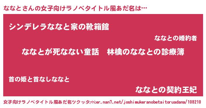 | 男性向けラノベタイトル風あだ名 | 『魔弾の王とななと』『緋弾のナナト』 |