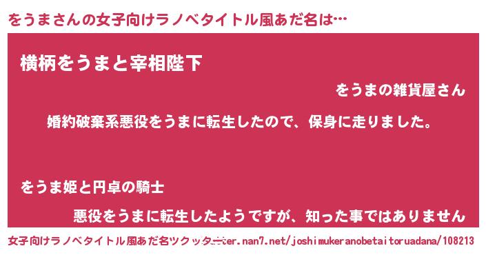 | ヒーロー風カッコイイあだ名 | 『仮面ヲウダー』『ウルトラをうまマン』 |