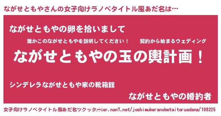 | 胡散臭い通販商品みたいなあだ名 | 『伝統あるサプリメント…その名も「ながせともや」』 |