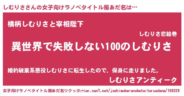 | 胡散臭い通販商品みたいなあだ名 | 『絶対に幸福をもたらす水素水…その名も「しむりさ」』 |