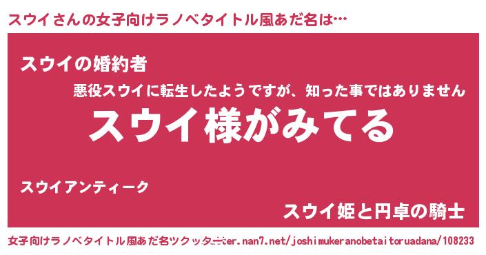 | 男性向けラノベタイトル風あだ名 | 『スウイの嫁は女の子じゃないと思った?』 |