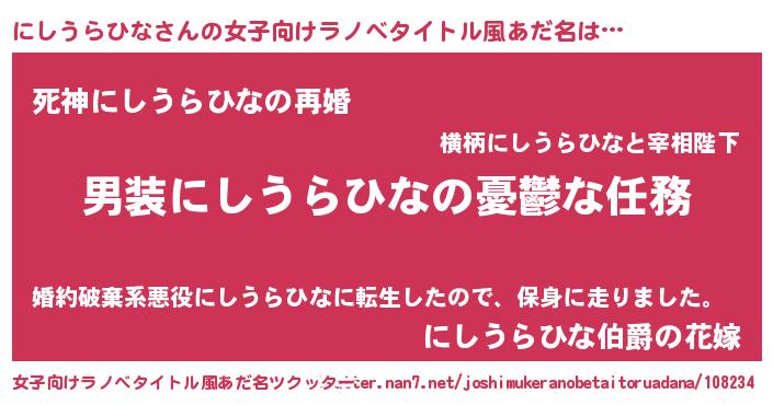 | 男性向けラノベタイトル風あだ名 | 『うちのにしうらひなが世界を掌握している!』 |