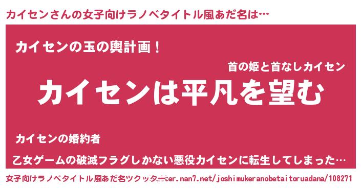 | 胡散臭い通販商品みたいなあだ名 | 『信頼と実績のネックレス…その名も「カイセン」』 |