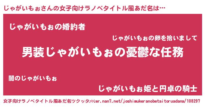 | 男性向けラノベタイトル風あだ名 | 『うちのじゃがいもぉが世界を掌握している!』 |