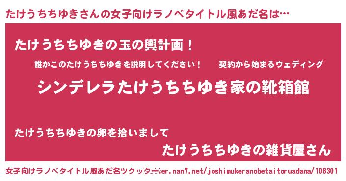 | 男性向けラノベタイトル風あだ名 | 『冴えないたけうちちゆきの育てかた』 |