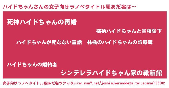 | 欧米人風あだ名 | 『ダレノガレハイドちゃん』 |