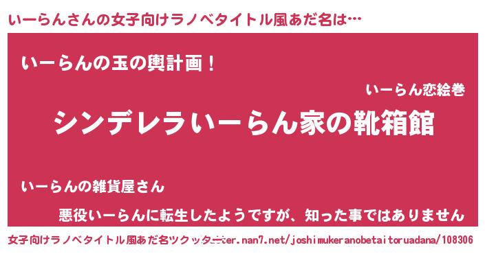 | 胡散臭い通販商品みたいなあだ名 | 『ハリウッド女優が絶賛した100年もののヴィンテージワイン…その名も「いーらん」』 |