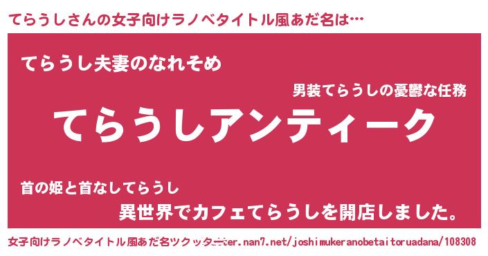 | 意味不明あだ名 | 『自称てらうし』『永久保存てらうし』 |