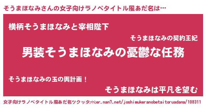 | 胡散臭い通販商品みたいなあだ名 | 『全米が絶賛したサプリメント…その名も「そうまほなみ」』 |