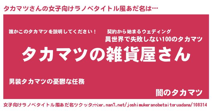 | 男性向けラノベタイトル風あだ名 | 『やはりタカマツの青春ラブコメはまちがっている 』 |
