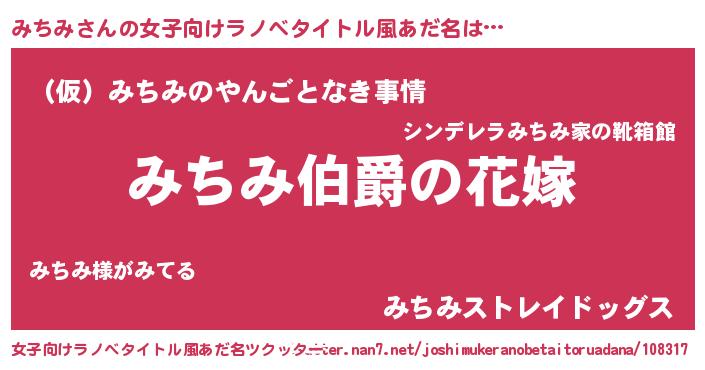 | 欧米人風あだ名 | 『みちみクリステル』『マイケルみちみ』 |