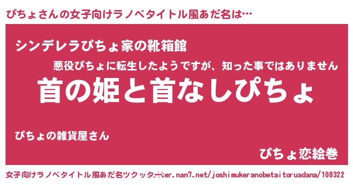 | 意味不明あだ名 | 『眠気覚ましガムぴちょ味』『自称ぴちょ』 |