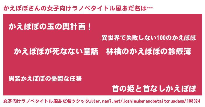 | 意味不明あだ名 | 『住所不定無職かえぽぽ(50歳)』 |