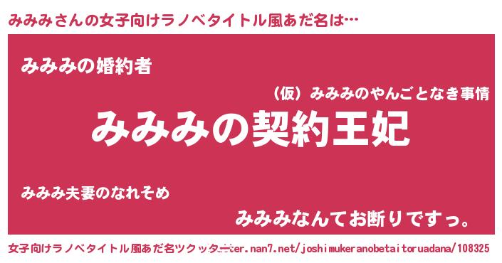 | 男性向けラノベタイトル風あだ名 | 『みみみという概念が存在しない退屈な世界 』 |