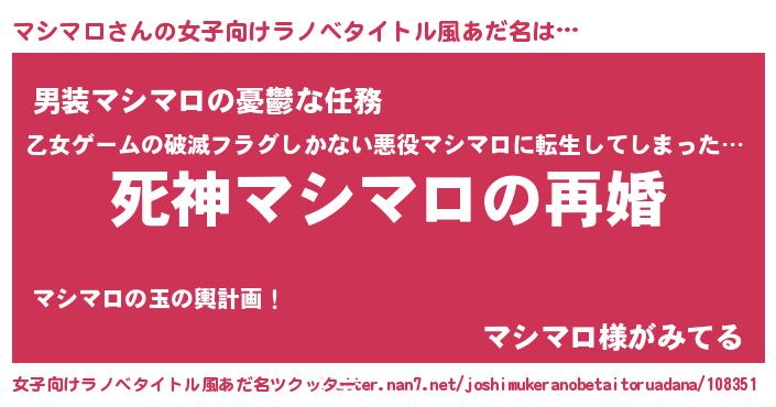 | 男性向けラノベタイトル風あだ名 | 『ノーゲーム・ノーマシマロ』 |