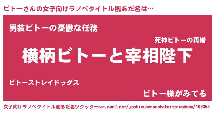 | 男性向けラノベタイトル風あだ名 | 『ビトーに滅ぼされるだけの簡単なお仕事です』 |