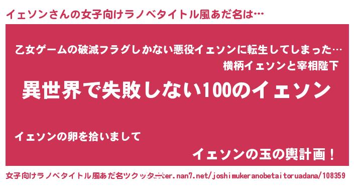 | 胡散臭い通販商品みたいなあだ名 | 『絶対に幸福をもたらす健康食品…その名も「イェソン」』 |