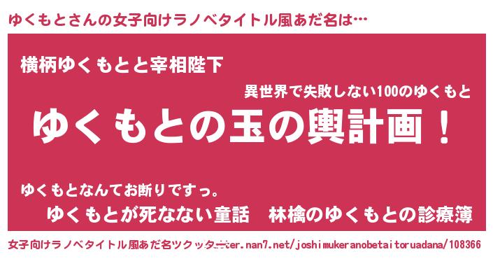 | 男性向けラノベタイトル風あだ名 | 『転生したらゆくもとだった件』 |