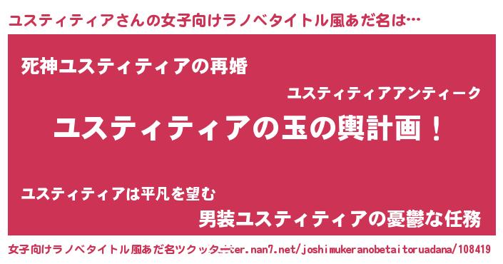 | 男性向けラノベタイトル風あだ名 | 『転生したらユスティティアだった件』 |