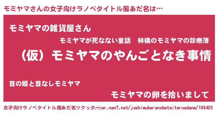 | 男性向けラノベタイトル風あだ名 | 『モミヤマの憂鬱』『魔弾の王とモミヤマ』 |