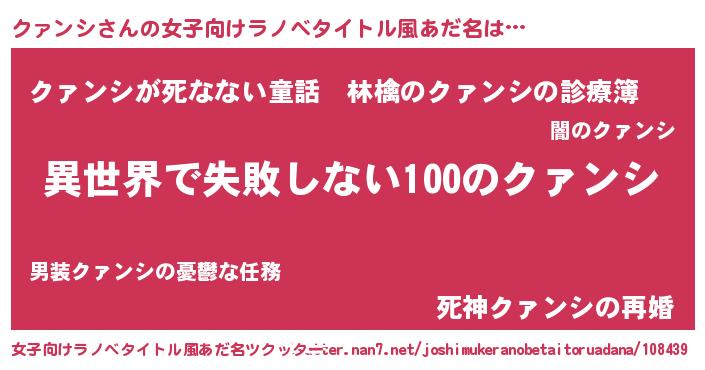 | 胡散臭い通販商品みたいなあだ名 | 『絶対に幸福をもたらす健康食品…その名も「クァンシ」』 |