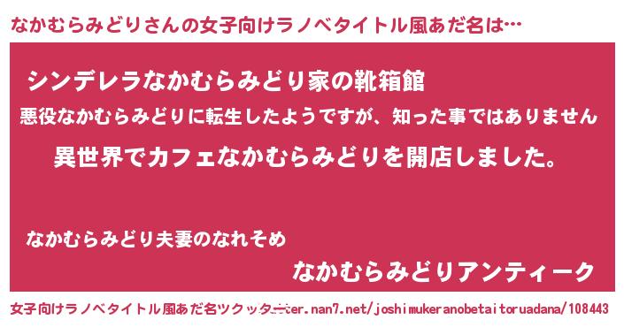| 男性向けラノベタイトル風あだ名 | 『誰もが恐れるあのなかむらみどりが、ぼくの専属メイドになるようです。』 |