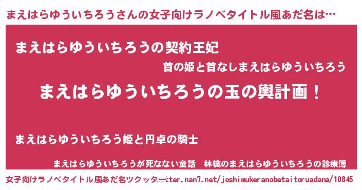| 男性向けラノベタイトル風あだ名 | 『転生したらまえはらゆういちろうだった件』 |