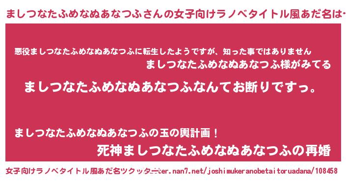 | 恥ずかしいあだ名 | 『マシツナタフメナヌアナツフデラックス』 |
