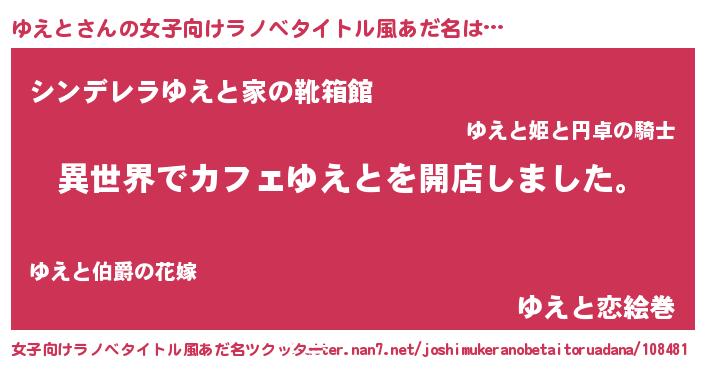 | ヒーロー風カッコイイあだ名 | 『ネオユエト』『正義の使者ゆえと』 |