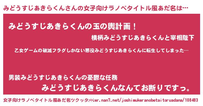 | 男性向けラノベタイトル風あだ名 | 『この素晴らしい世界にみどうすじあきらくんを!』 |