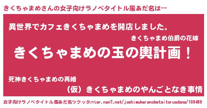 | 男性向けラノベタイトル風あだ名 | 『きくちゃまめ~年齢イコール彼女いない歴の魔法使い~』 |