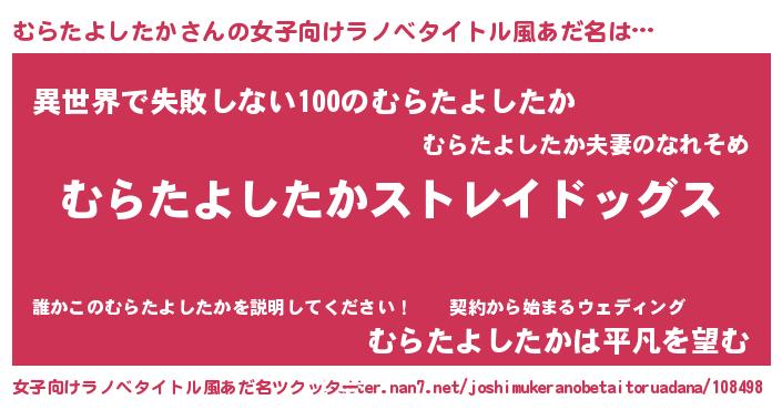 | 男性向けラノベタイトル風あだ名 | 『Re:むらたよしたかから始める異世界生活』 |
