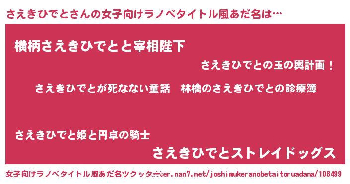 | 意味不明あだ名 | 『住所不定無職さえきひでと(81歳)』 |