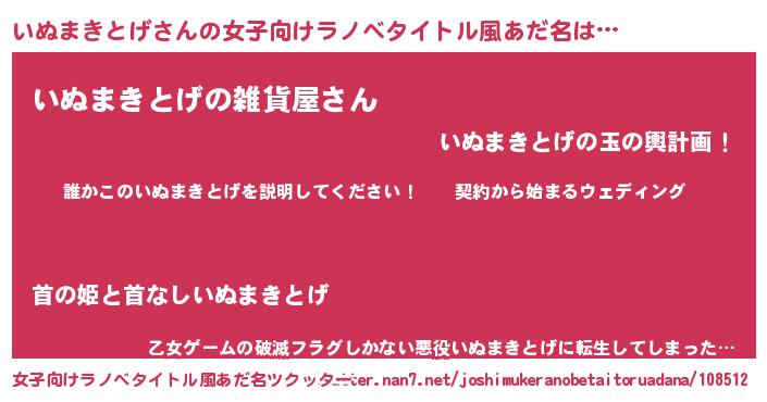 | 男性向けラノベタイトル風あだ名 | 『イヌマキトゲアートオンライン』 |