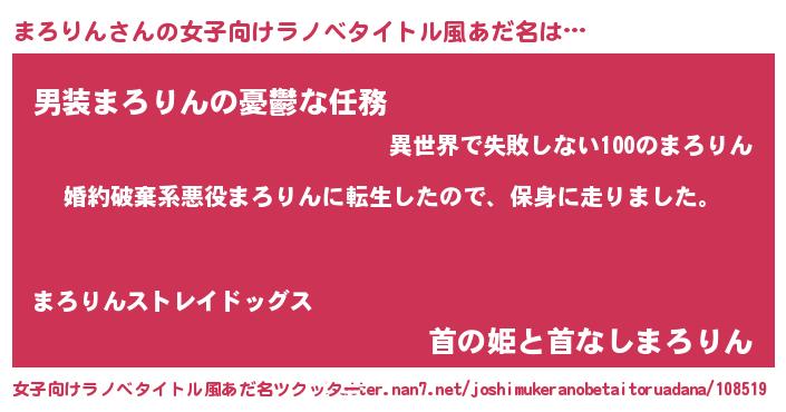 | 意味不明あだ名 | 『なめこ科まろりん属』『自称まろりん』 |