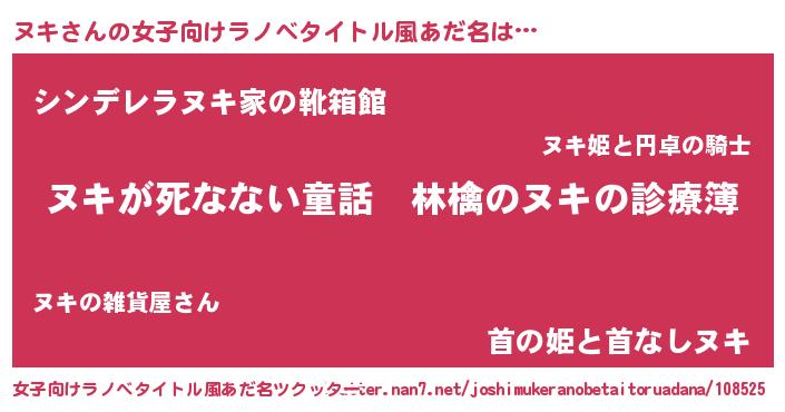 | 男性向けラノベタイトル風あだ名 | 『魔弾の王とヌキ』『はたらくヌキさま!』 |