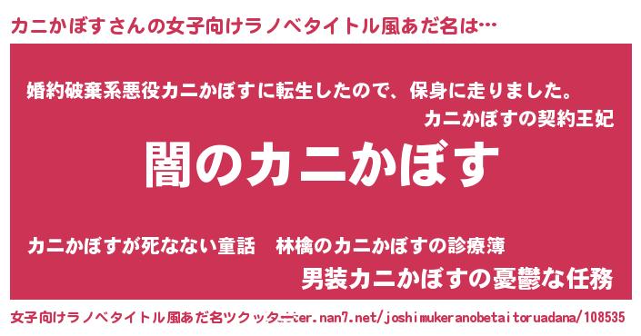 | 意味不明あだ名 | 『自称カニかぼす』『永久保存カニかぼす』 |