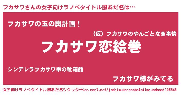 | ヒーロー風カッコイイあだ名 | 『慈愛の使者フカサワ』『幻影騎士フカ』 |