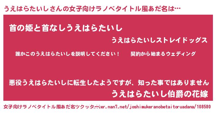 | 胡散臭い通販商品みたいなあだ名 | 『億万長者になれる霊験あらたかなお札…その名も「うえはらたいし」』 |