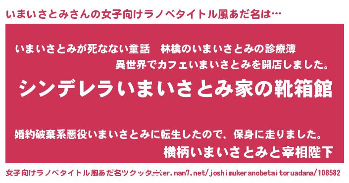 | 意味不明あだ名 | 『住所不定無職いまいさとみ(3歳)』 |