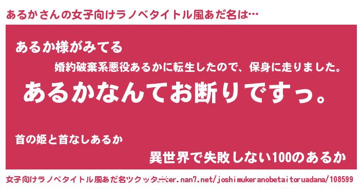 | 男性向けラノベタイトル風あだ名 | 『魔法科高校のあるか』 |