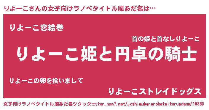 | 男性向けラノベタイトル風あだ名 | 『りよーこの憂鬱』 |